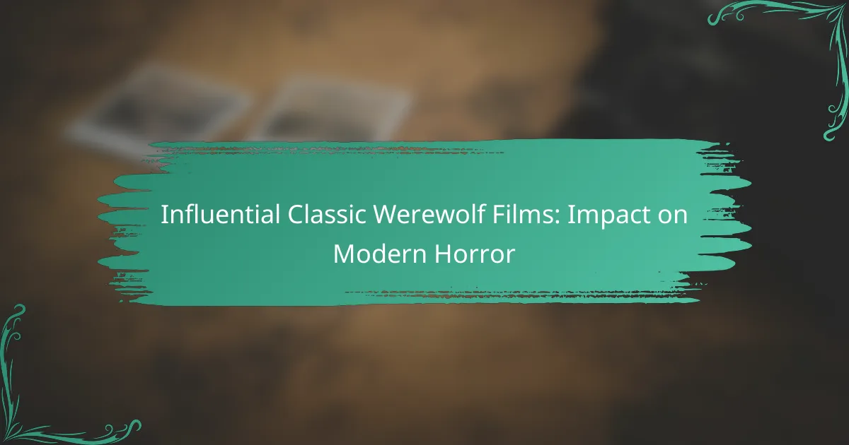 Several classic werewolf films have significantly shaped the horror genre, particularly in their portrayal of transformation and the psychological aspects of fear. Notable examples include ‘The Wolf Man’, ‘An American Werewolf in London’, and ‘The Howling’, each contributing unique elements that resonate in modern horror cinema.
